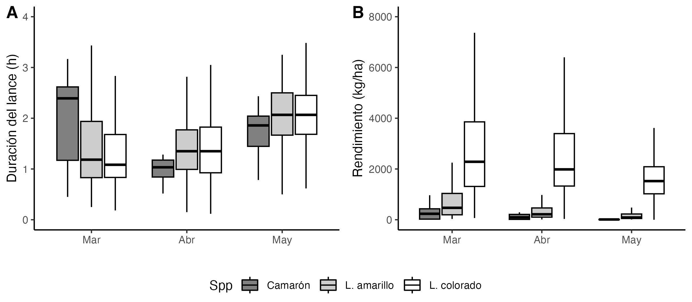 Las capturas totales fueron lideradas por el langostino colorado con 792 toneladas y un rendimiento promedio de 1546 kg/ha. El langostino amarillo sumó 55 toneladas con un rendimiento de 196 kg/ha, y el camarón nailon alcanzó 128 kilos siendo capturado solo como fauna acompañante.