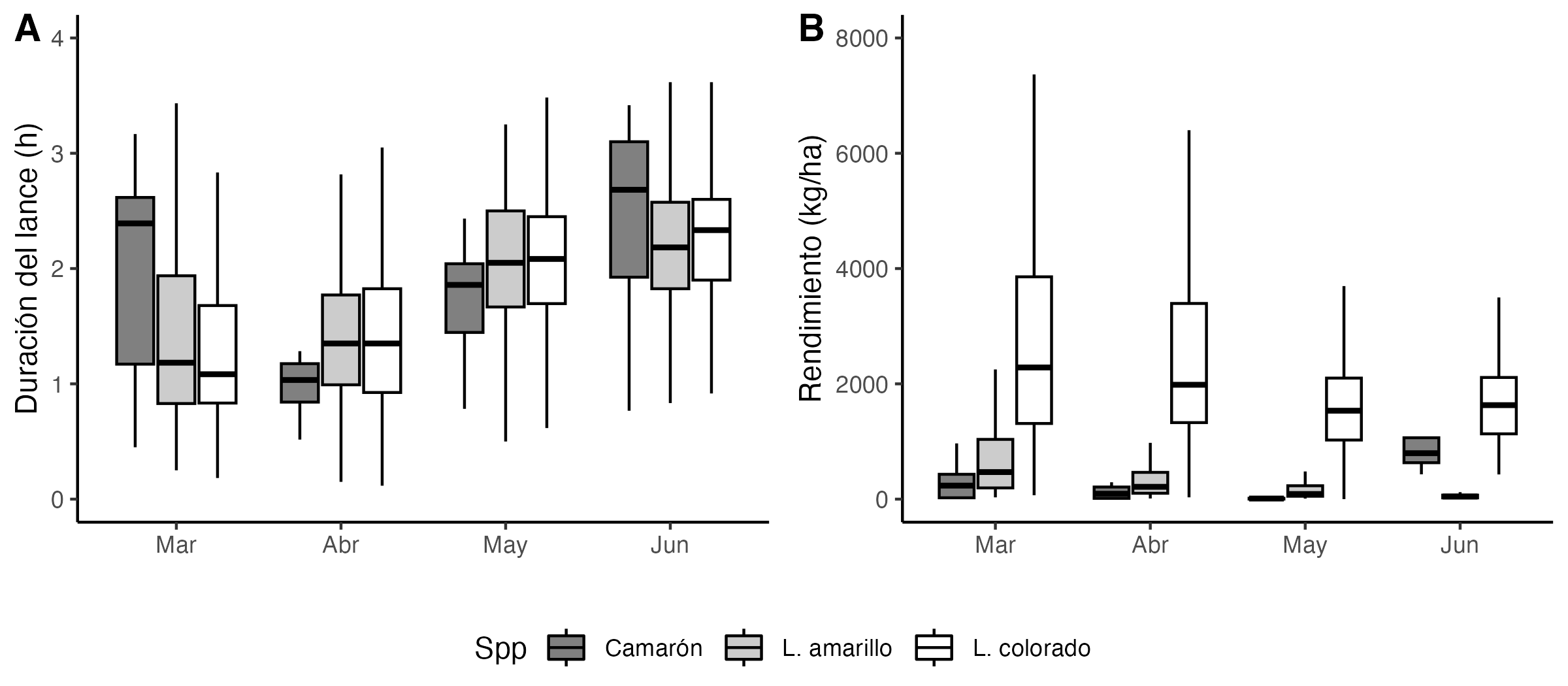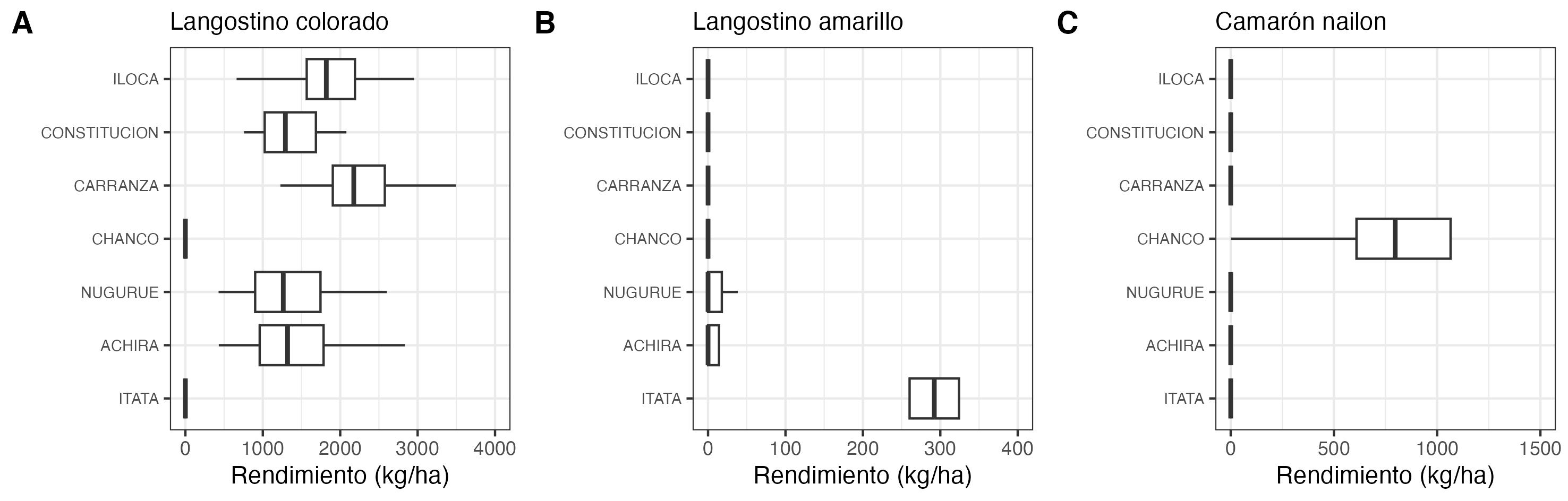 Las capturas totales fueron lideradas por el langostino colorado con 722 toneladas y un rendimiento promedio de 1571 kg/ha. El camarón nailon sumó 18 toneladas con un rendimiento de 933 kg/ha, y el langostino amarillo alcanzó 5 toneladas.